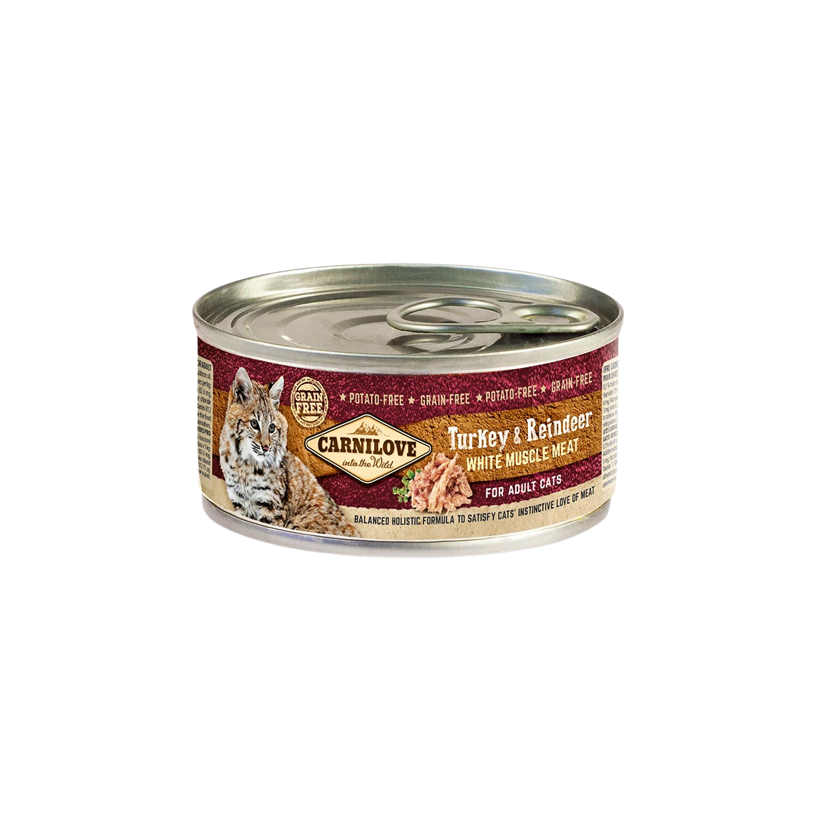Podstawę formuły Carnilove Cat White Muscle Meat Adult stanowi mięso z indyka, czyli lekkostrawne, delikatne źródło białka, które wspiera budowę i utrzymanie masy mięśniowej, a także odpowiedni poziom energii. Ta formuła została jednak wzbogacona o jeszcze inne źródło – dzikie mięso renifera, bogate w przeciwutleniacze, które pomagają neutralizować wolne rodniki i wspierają regenerację organizmu.